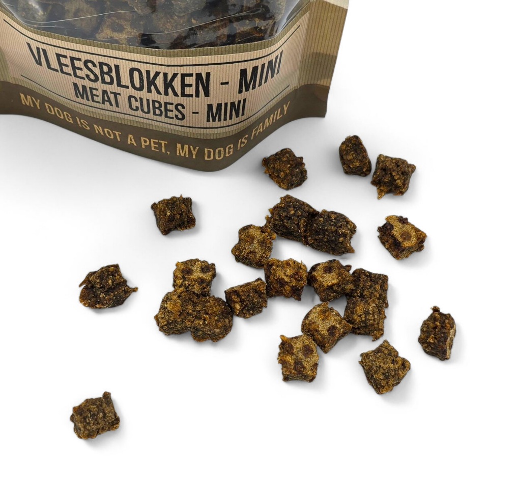 Door de kubusvorm van 1 x 1 x 1 cm is deze natuursnack ook ideaal als trainer bij grotere honden!